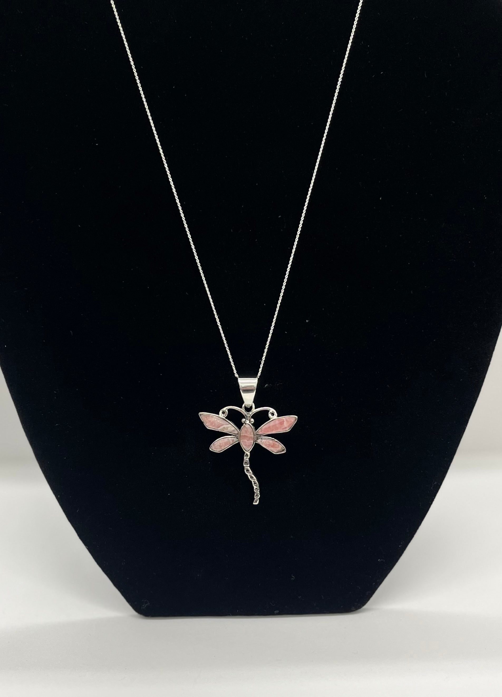 Rhodochrosite and Sterling Silver Dragonfly Pendant with chain
