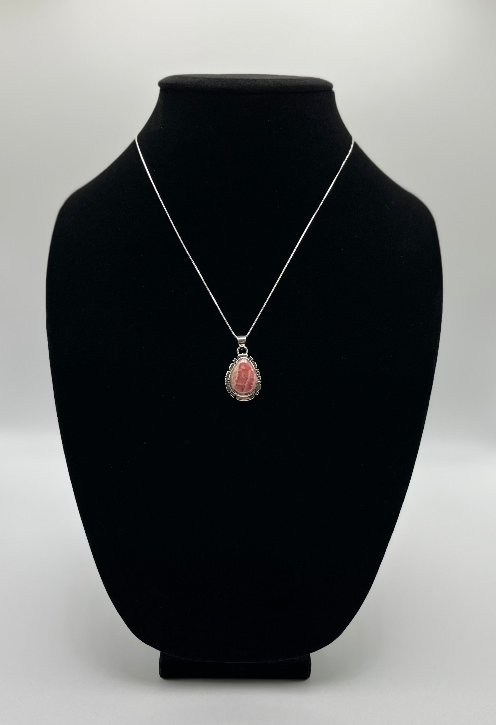 Rhodochrosite and Sterling Silver Pendant with chain