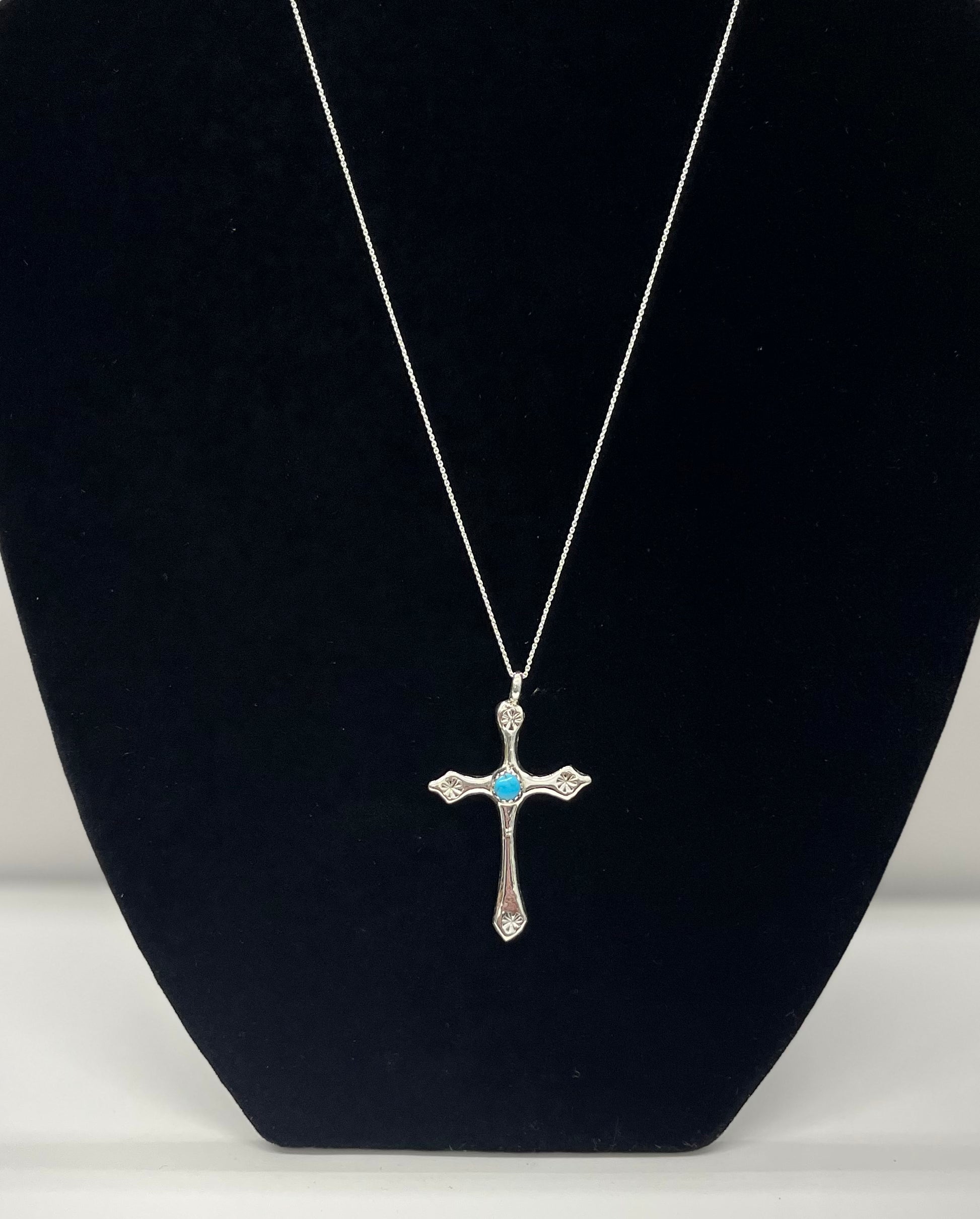 Turquoise and Sterling Silver Cross Pendant with chain