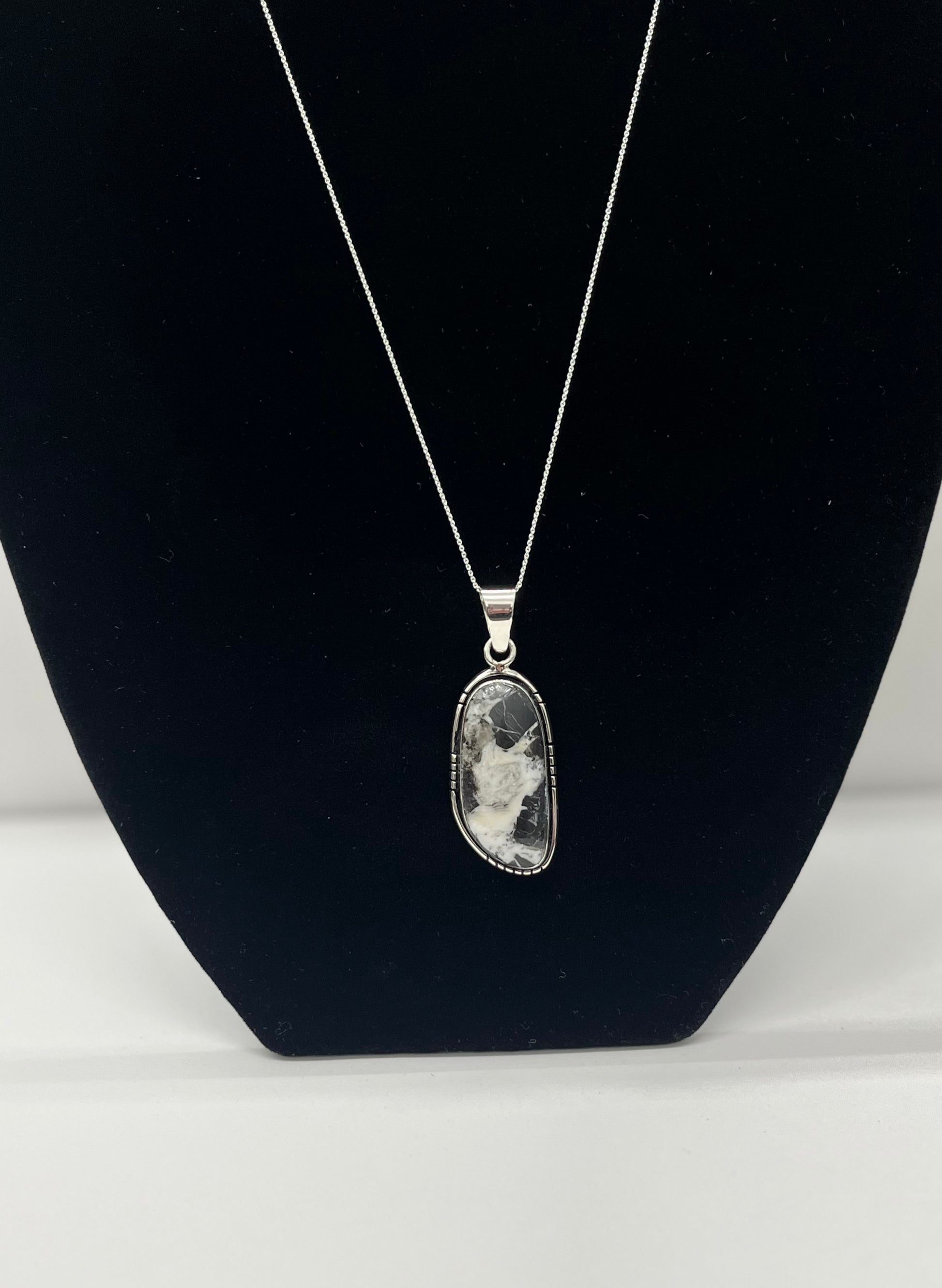 White Buffalo Turquoise and Sterling Silver Pendant with chain